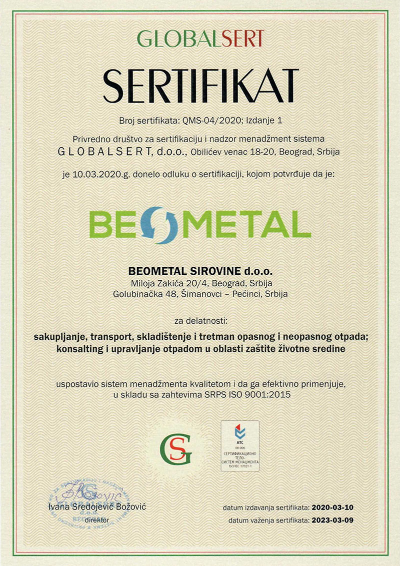 Bavimo se konsaltingom i upravljanjem otpadom u oblasti zaštite životne sredine. Pružamo usluge kompletnih rešenja upravljanja otpadom. Ukoliko se bavite prizvodnjom i generišete metalni otpad slobodno nas kontaktirajte.